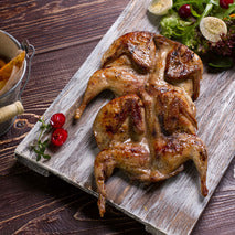 El deshuesado de codorniz es una elegante técnica culinaria que consiste en retirar delicadamente las espinas de la codorniz, conservando su forma. Esta refinada preparación permite rellenar el ave con ingredientes sabrosos y cocinarla uniformemente, lo que resulta en una presentación sofisticada y un sabor exquisito. Ideal para comidas gourmet, este método realza la ternura de la carne a la vez que realza la estética del plato. Listo para realzar sus creaciones culinarias, este deshuesado de codorniz, de aproximadamente 150 g cada uno, se vende en paquetes de 10 para una experiencia gastronómica completa.