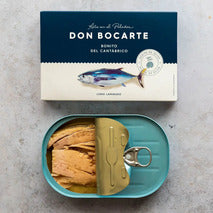 Don Bocarte utiliza únicamente bonito fresco (no congelado) capturado en el Golfo de Vizcaya. Bonitos de calibre medio a grande, a los que se les añade el punto justo de sal y se les somete a un minucioso proceso de cocción... El resultado es un producto distintivo, jugoso y delicado.