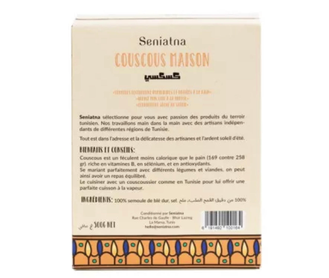 À cuisiner avec légumes (courgettes, carottes, potiron), légumineuses (fèves, pois chiche) et viandes pour un repas équilibré. Sur le plan nutritionnel, le couscous est moins calorique que le pain et riche en sélénium, un puissant antioxydant. La cuisson vapeur est recommandée, comme dans les couscoussiers traditionnels tunisiens.