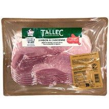 Jambon cuit traditionnel élaboré selon les méthodes ancestrales bretonnes. Tallec, maison de référence depuis 1947, sélectionne des porcs fermiers Label Rouge pour cette charcuterie d'exception. Six tranches de 300g de saveur authentique, sans compromis sur la qualité des ingrédients naturels. Mijoté au torchon, cuit avec son os dans un bouillon de légumes.