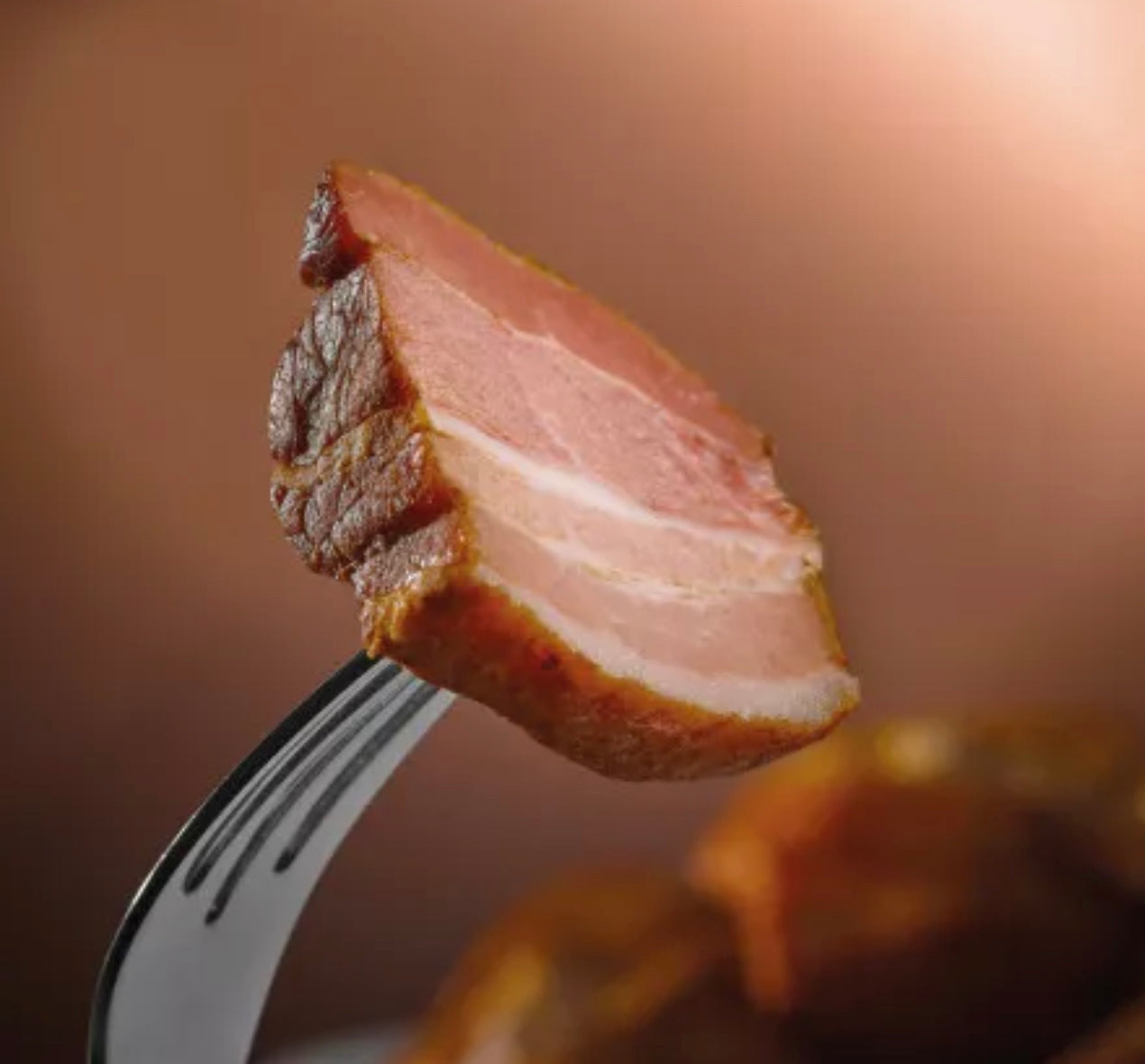 Rillons découennés de poitrine de porc, maigre et gras alternant en couches dans une proportion idéale de 2/3 de viande maigre pour 1/3 de gras. La couleur dorée à brun foncé à l'extérieur, est rosée à la coupe. La chair, confite par une cuisson longue, est goûteuse et fondante.
